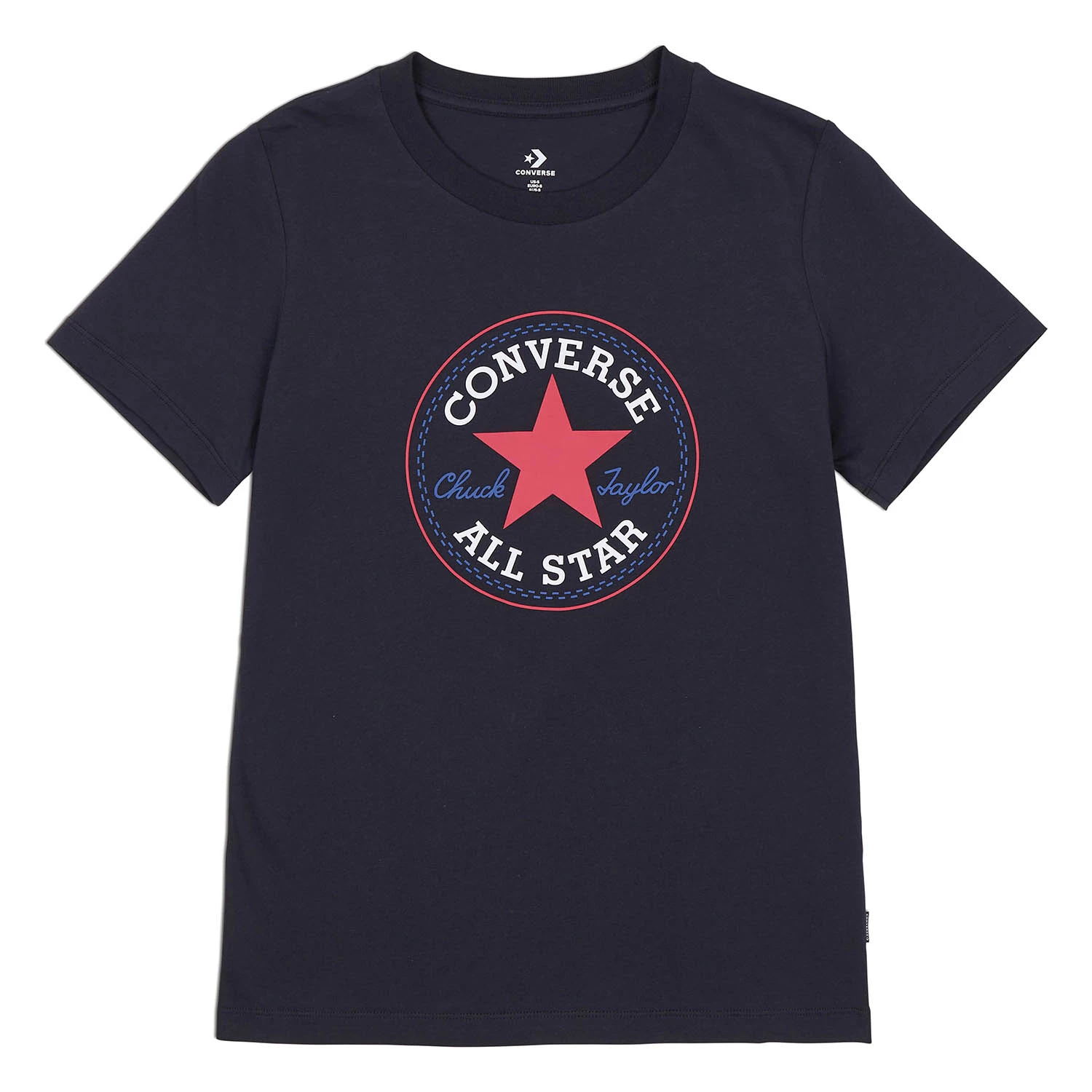 In deiner Freizeit wirst du mit dem Converse Damen T-Shirt in Schwarz immer gut aussehen. Es ist super bequem, kühlend und leicht. Lasse Dich von diesem Shirt des 1908 gegründeten und weltweit etablierten Topherstellers aus den Vereinigten Staaten begeistern. Das Oberteil ist kurzärmelig und hat einen bequemen Rundhals-Ausschnitt. Zum absoluten Highlight wird es durch das Grafikelement auf der Brust. Mit diesem T-Shirt bist du in deiner Freizeit stets modern unterwegs.
