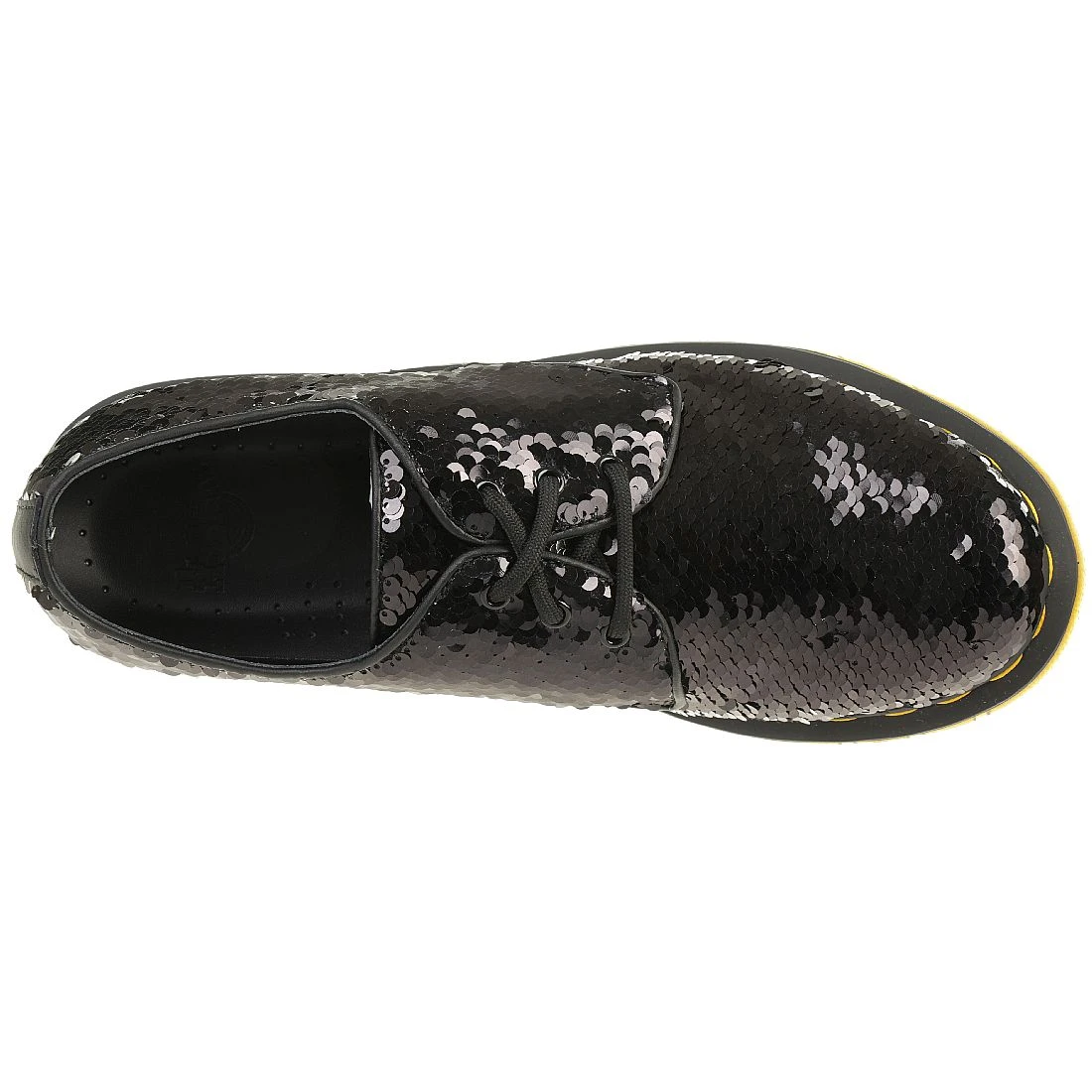 Der 1461 ist unser original Unisex 3-Loch Schuh. Ursprünglich wurde er als Arbeitsschuh entwickelt und von Generationen von Nonkonformisten zum Sinnbild für Rebellion geprägt. Mit seinen spektakulären reversiblen Pailletten, die von Schwarz zu Silber changieren, ist dieser 1460 absolut partytauglich.