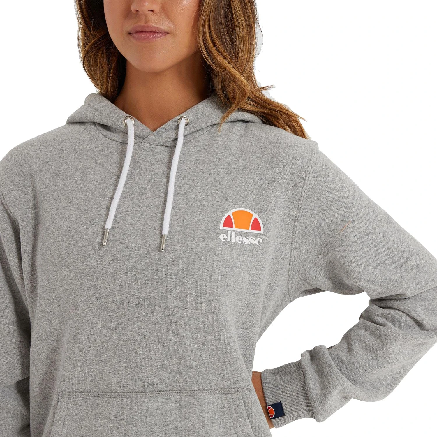 Der Elise Over Head Logo-Kapuzenpullover mit Kapuze und Kordelzug von Ellesse verfügt über zwei Schieber in den Taschen. Dieser Kapuzenpullover für Damen hat ein Branding auf der linken Brust und verfügt über gerippte und elastische Bündchen und Saum, lange Ärmel und einen geraden Saum.