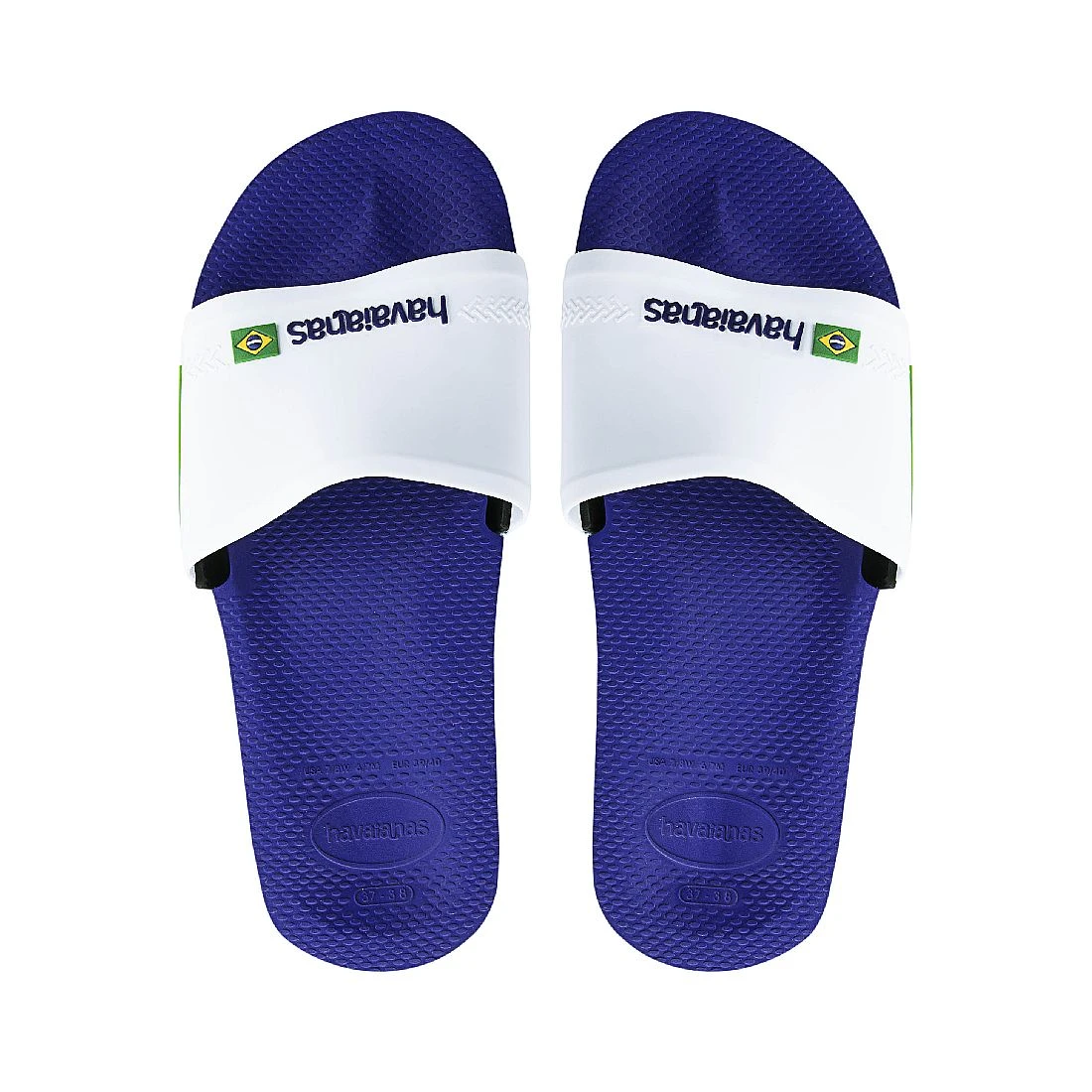 Der breite Riemen dieses Modells ist mit der brasilianischen Nationalflagge und farblich passendem Havaianas-Logo verziert und sorgt für einen perfekten Sitz.
