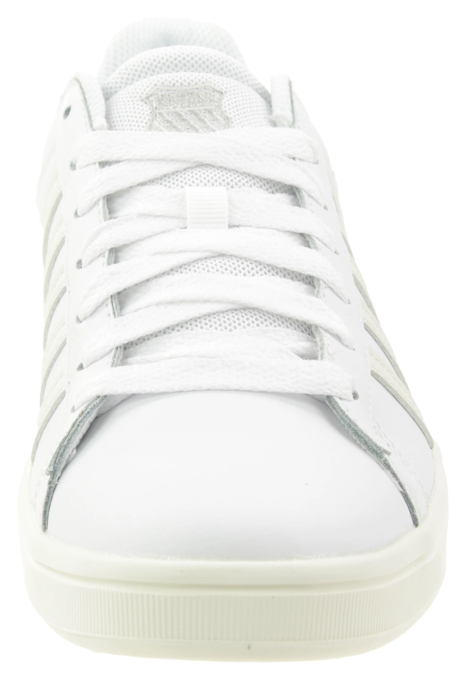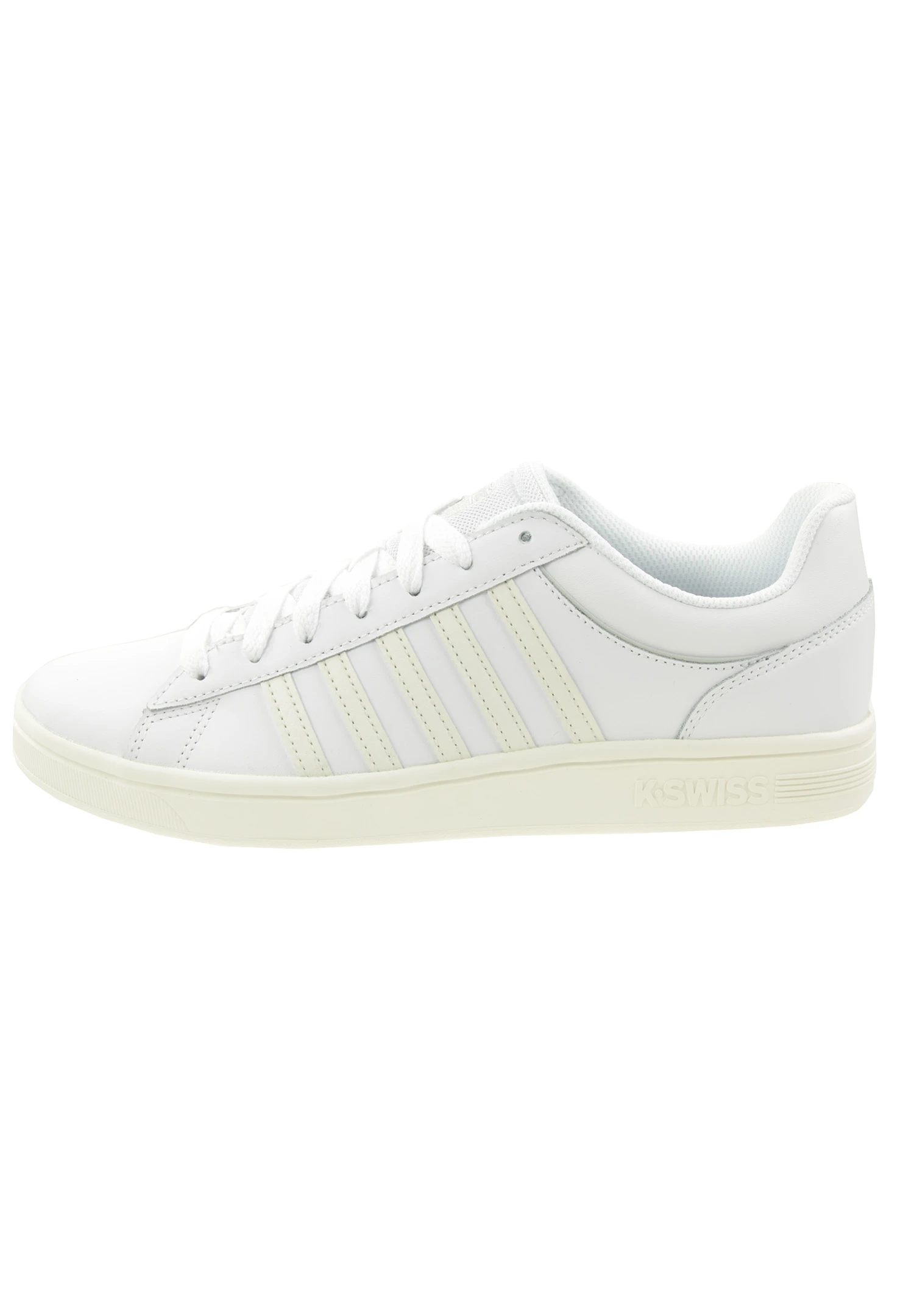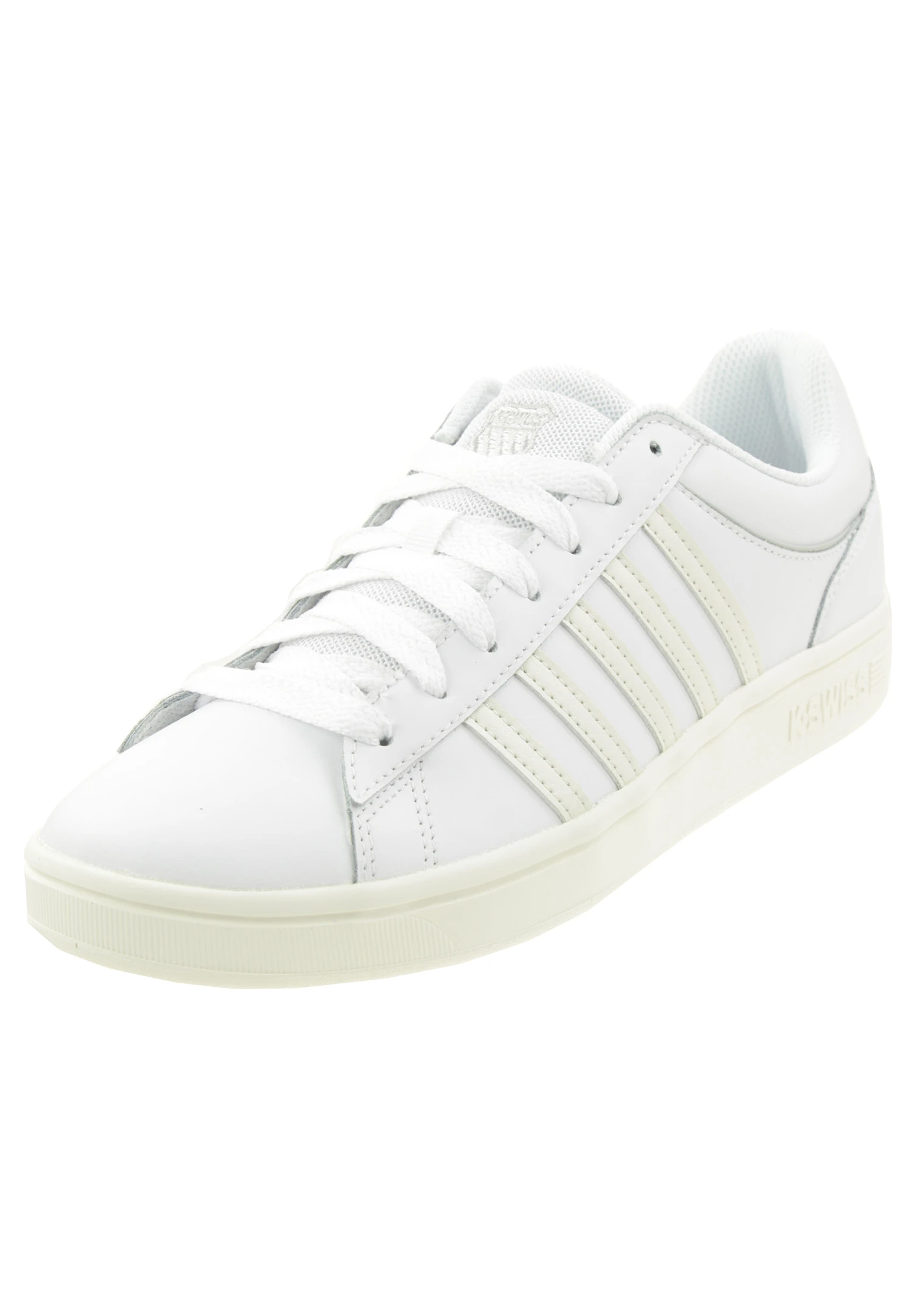 Der Court Winston ist eine elegante, moderne Ergänzung der K-Swiss-Linie von Court-Sneakers. Der klassische Schuh aus glattem Leder verfügt über einen traditionellen Look. Lederüberzüge zeichnen die fünf Streifen von K-Swiss aus, die perfekt zum gestickten Schild auf der Zunge passen. Der Court Winston ist ein zeitloser Stil, der einen dynamischen Look auf und neben dem Platz bietet.