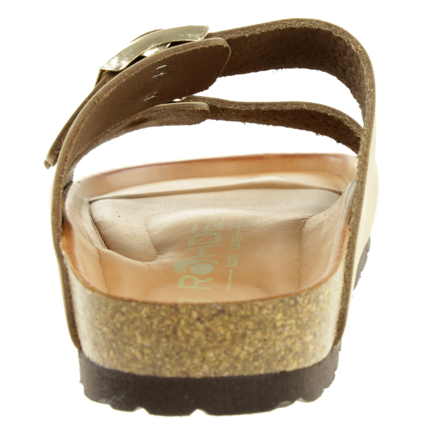 Klassische Damen Pantolette von Rohde in der Comfortweite G, mit anatomisch geformten weichem Fußbett und zwei Riemen mit Schnalle zum Verstellen.