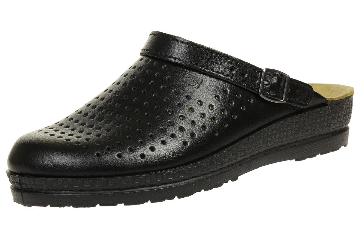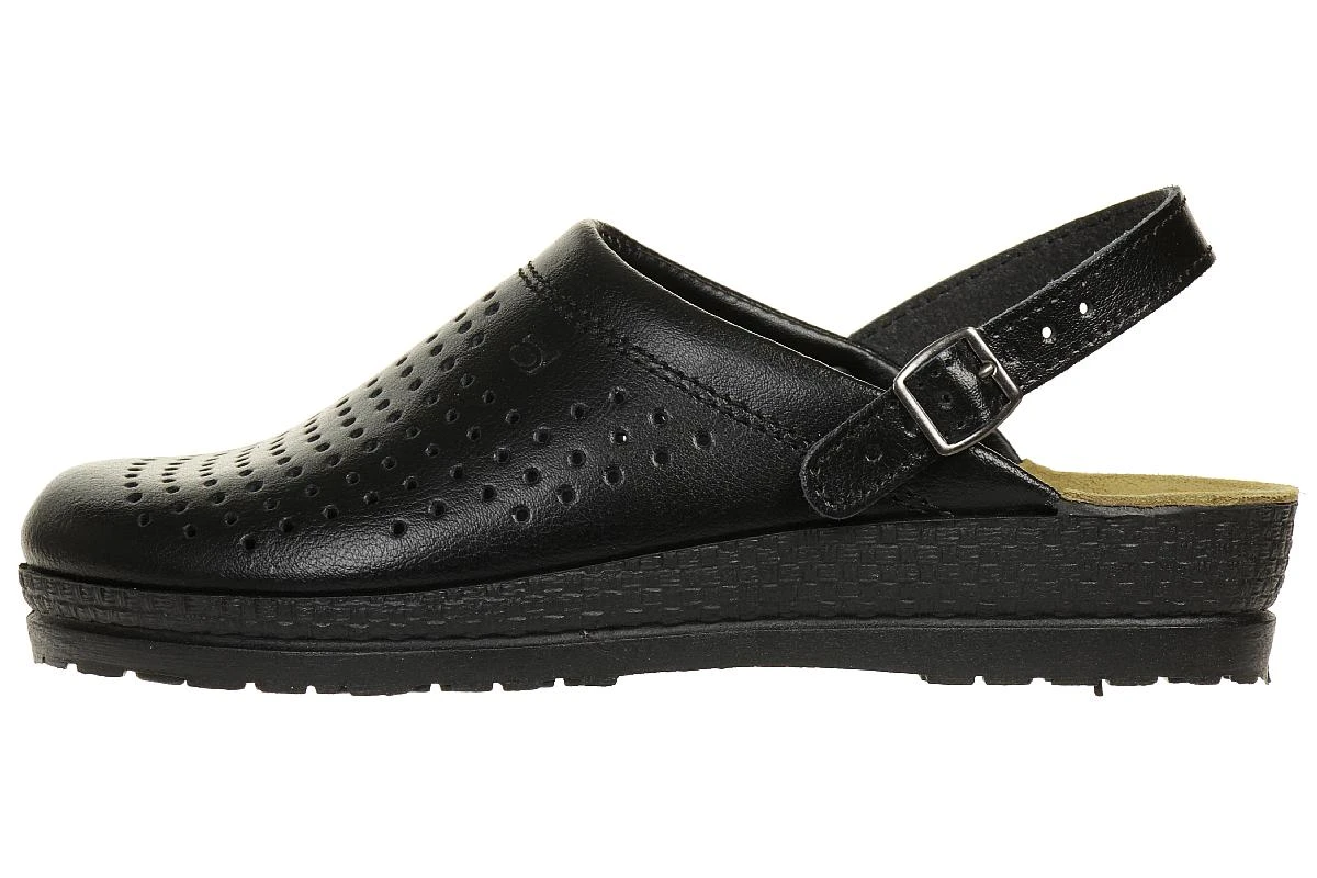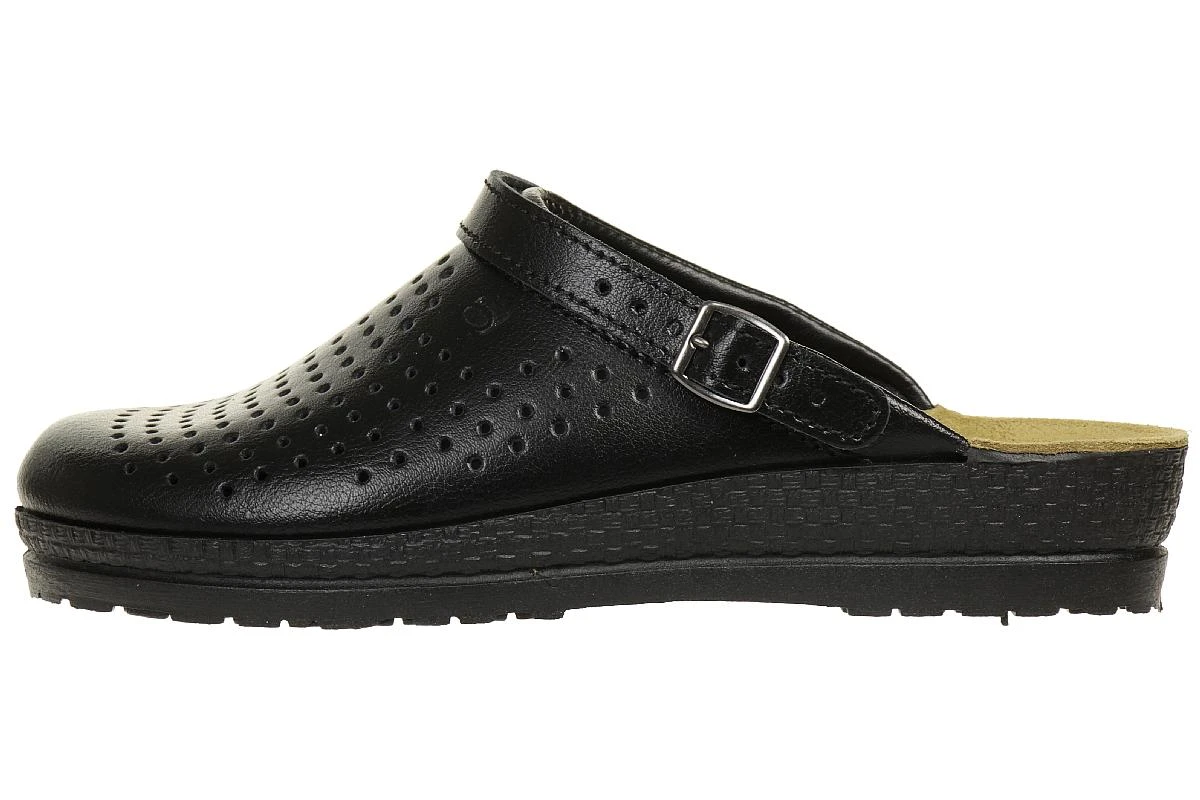 Klassische Damen Clogs Neustadt D von Rohde aus Leder in der Comfortweite G, mit anatomisch geformten weichem Fußbett und einem Riemen mit Schnalle zum Verstellen.