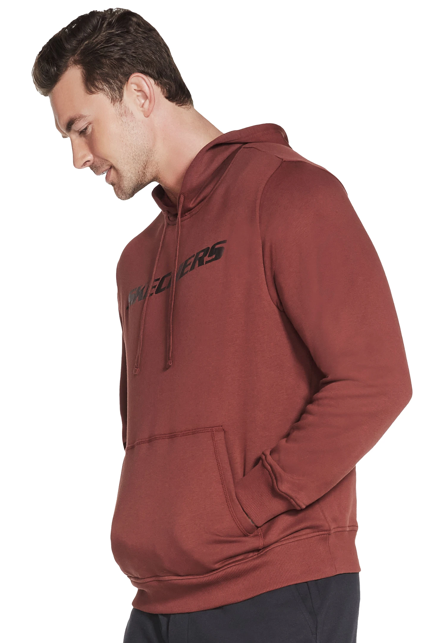 Der Skechers GOLOUNGE Wear Heritage Pullover Hoodie bietet einen klassischen Look mit weichem Komfort. Dieser Kapuzenpullover aus Baumwoll-Polyester-Gemisch verfügt über eine Skechers Logo-Grafik auf der Vorderseite und eine Kapuze mit Kordelzug.