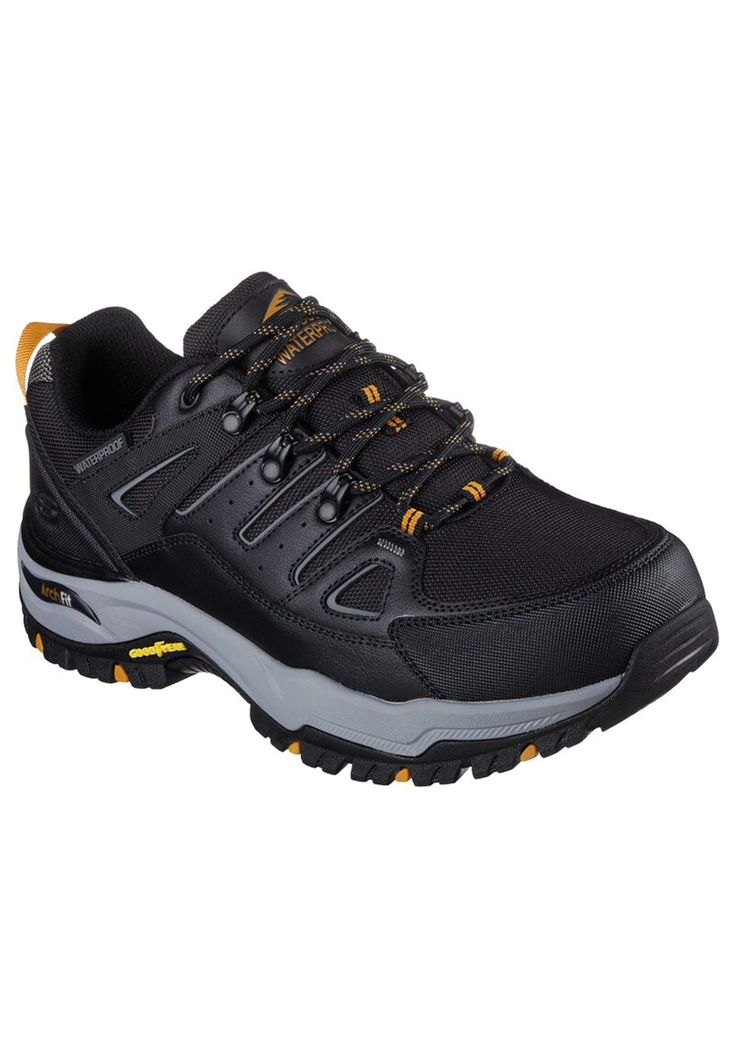 Gönn dir neue Abenteuer und stets maximalen Halt – jetzt mit dem strapazierfähigem Skechers Relaxed Fit : Arch Fit Dawson – Argosa. Dieser Lace-up-Trail-Sneaker verfügt über ein wasserdichtes teilsynthetisches Mesh-Obermaterial, eine herausnehmbare Arch Fit -Einlegesohle und eine robuste Goodyear Performance-Laufsohle.