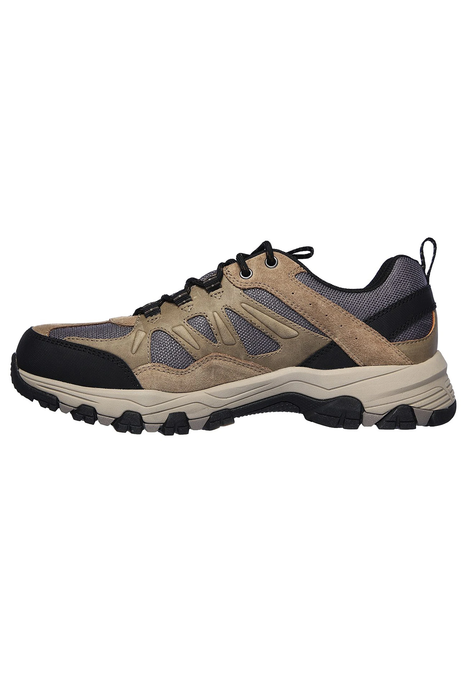 Gehen Sie Ihren eigenen Weg mit sicherem Komfort und robustem Outdoor-Stil mit dem SKECHERS Relaxed Fit : Selmen – Enago Schuh. Strapazierfähiges Leder, Sport-Wildleder, Synthetik und Mesh-Gewebe in einem wasserdichten, lässigen und bequemen Schnürschuh im Wanderstil mit Nähten und Overlay-Akzenten. Luftgekühlte Memory-Foam-Einlegesohle.