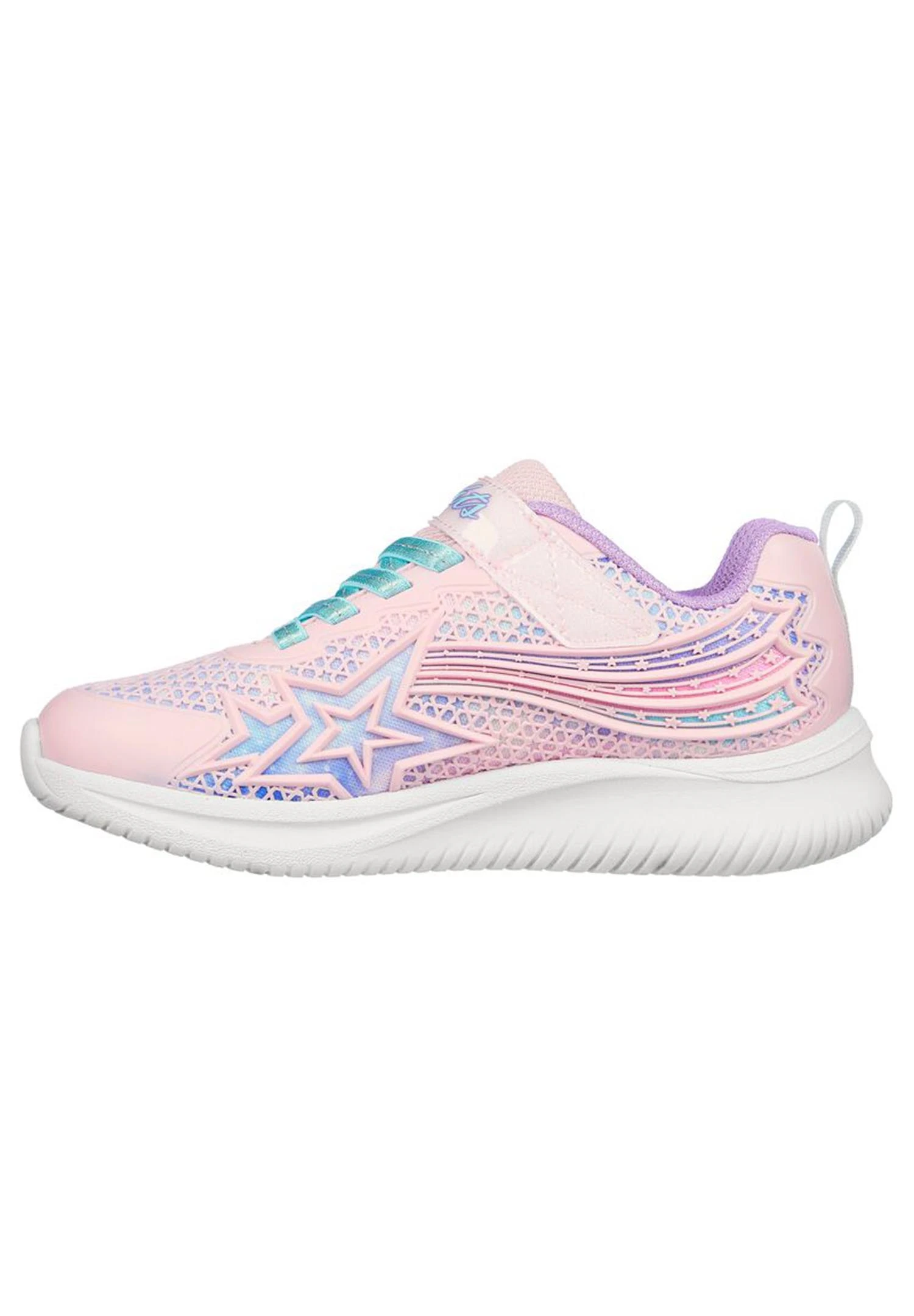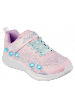 Ein fröhlicher Sneaker mit sportlichem Design ist der Skechers S-Lights Jumpsters – Wishful Star. Dieses wasserabweisende Slip-on-Sneaker verfügt über ein strapazierfähiges Obermaterial aus Stoff und Synthetik mit Light-up-Details sowie eine gepolsterte Zwischensohle.
