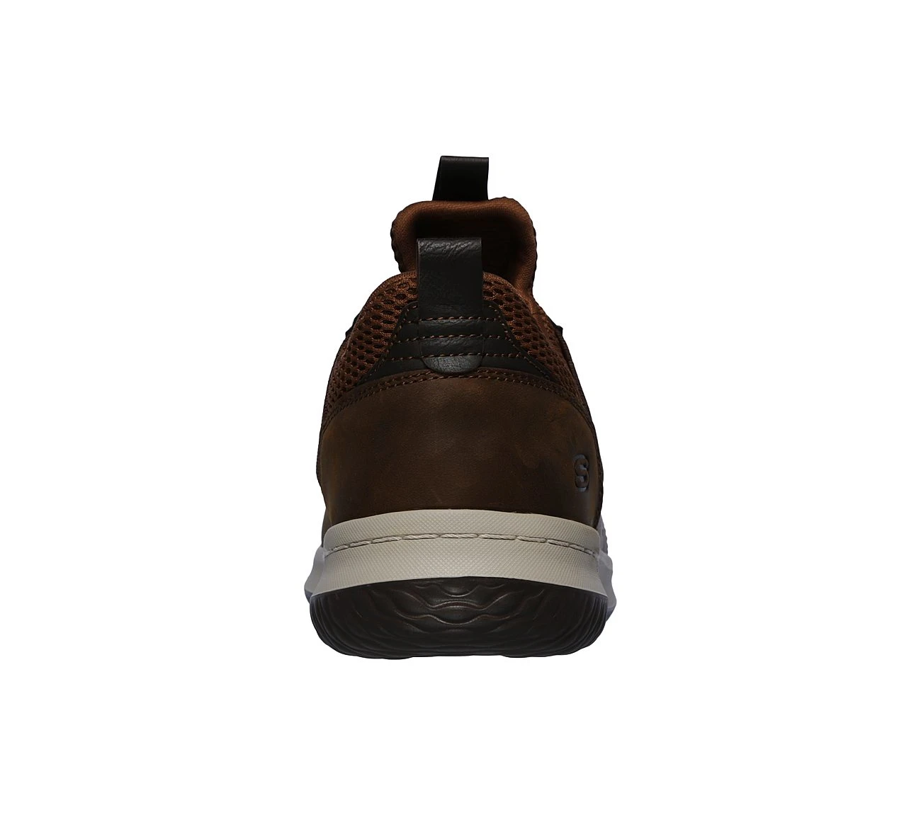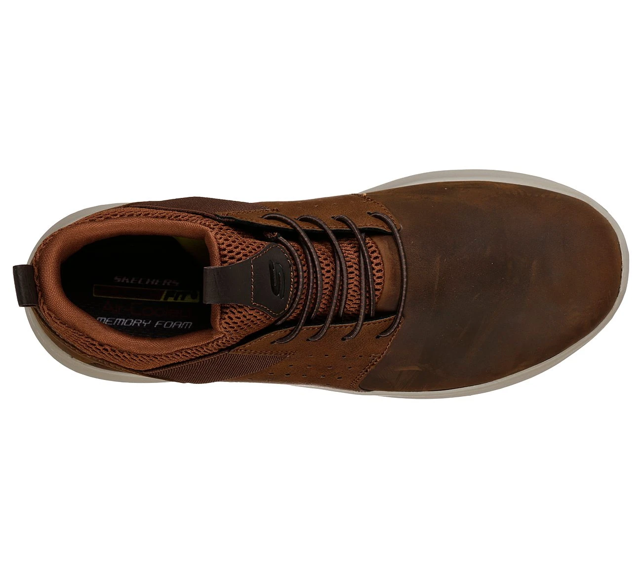 Vielseitiger Stil und bester Tragekomfort in Einem bietet der SKECHERS Delson – Axton Schuh. Sportlich-bequemer, legerer Sneaker im Oxford-Stil zum Hineinschlüpfen mit Schnürung vorne, einem Obermaterial aus glattem Leder und Mesh sowie Ziernähten und Overlay-Akzenten. Air Cooled Memory Foam Einlegesohle, flexible Zwischensohle mit hohem Komfortversprechen.