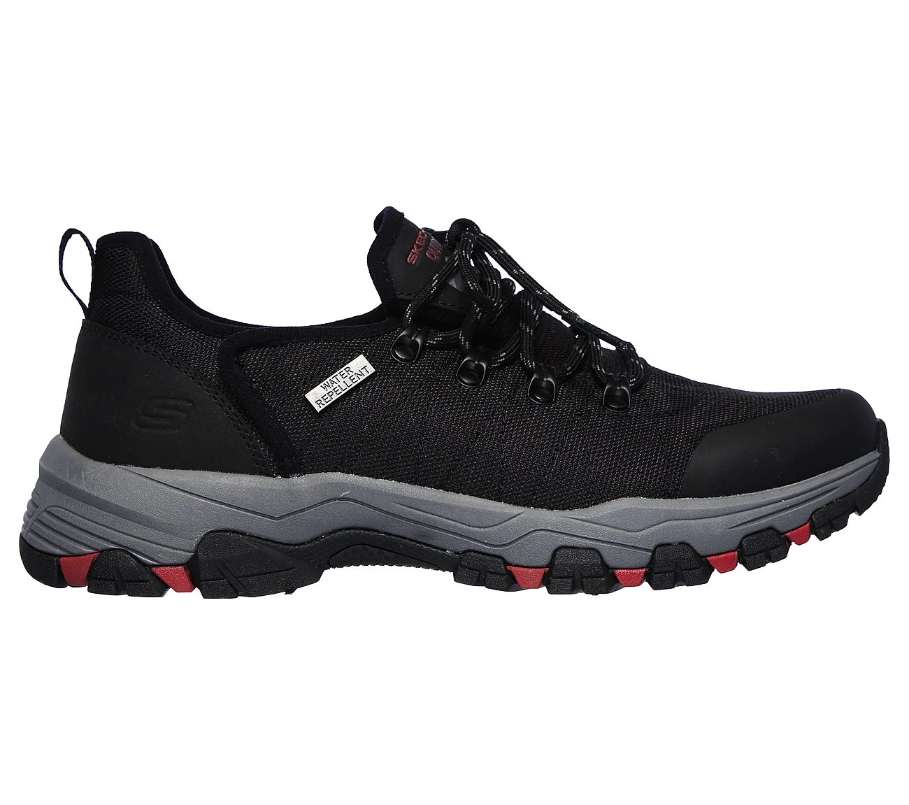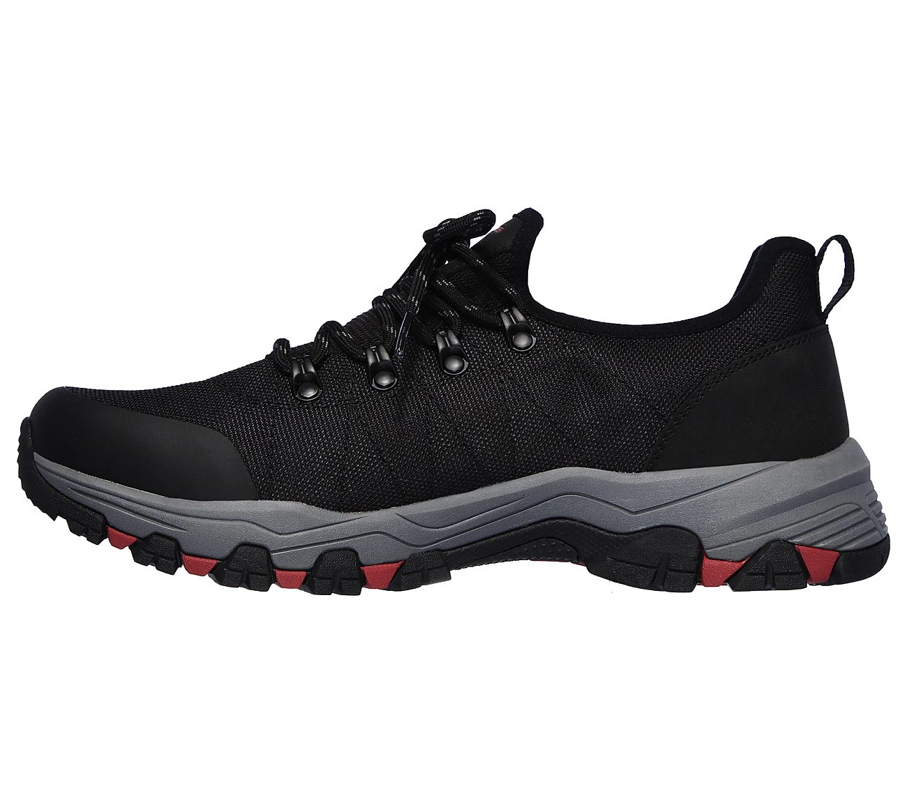 Ideal für deinen Tag und das Gelände der SKECHERS Relaxed Fit : Selmen – Norden Schuh. Sportlilcher Water Repellent Wander-Sneaker mit Schnürung und seitlichen Klettverschluss, einem Obermaterial aus Nylon sowie Ziernähten, Overlay-Akzenten und einer Einlegesohle aus Air Cooled Memory Foam.
