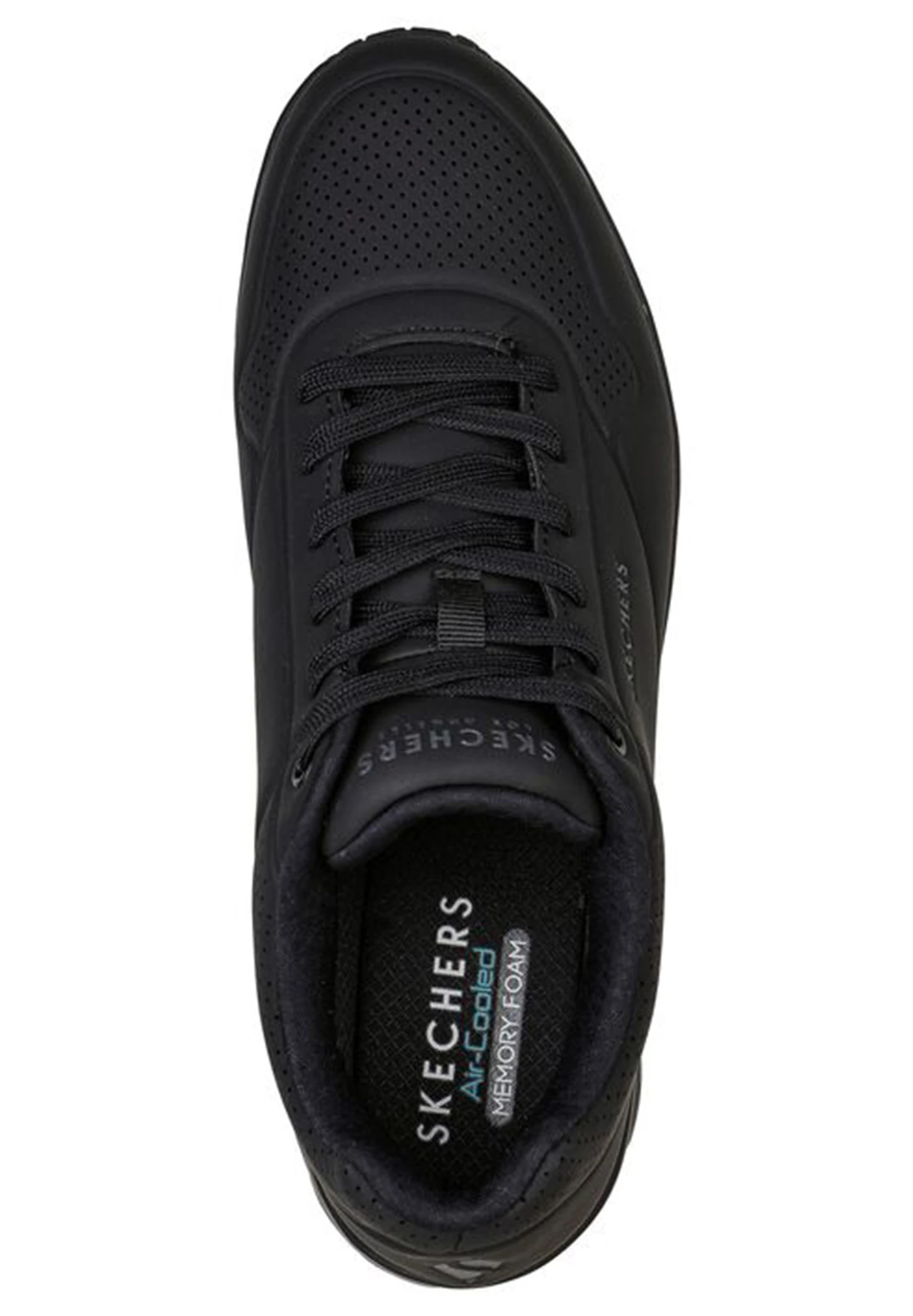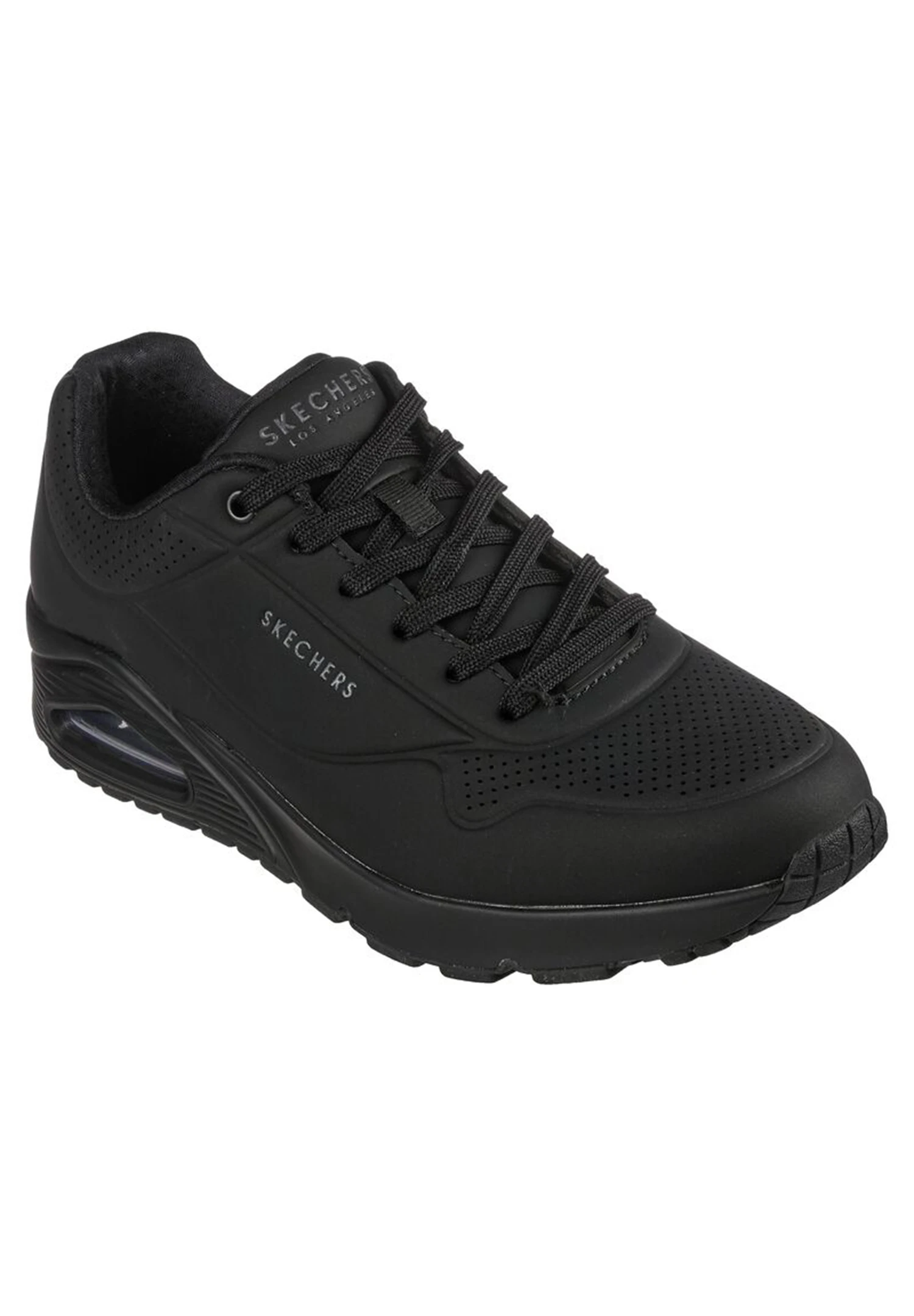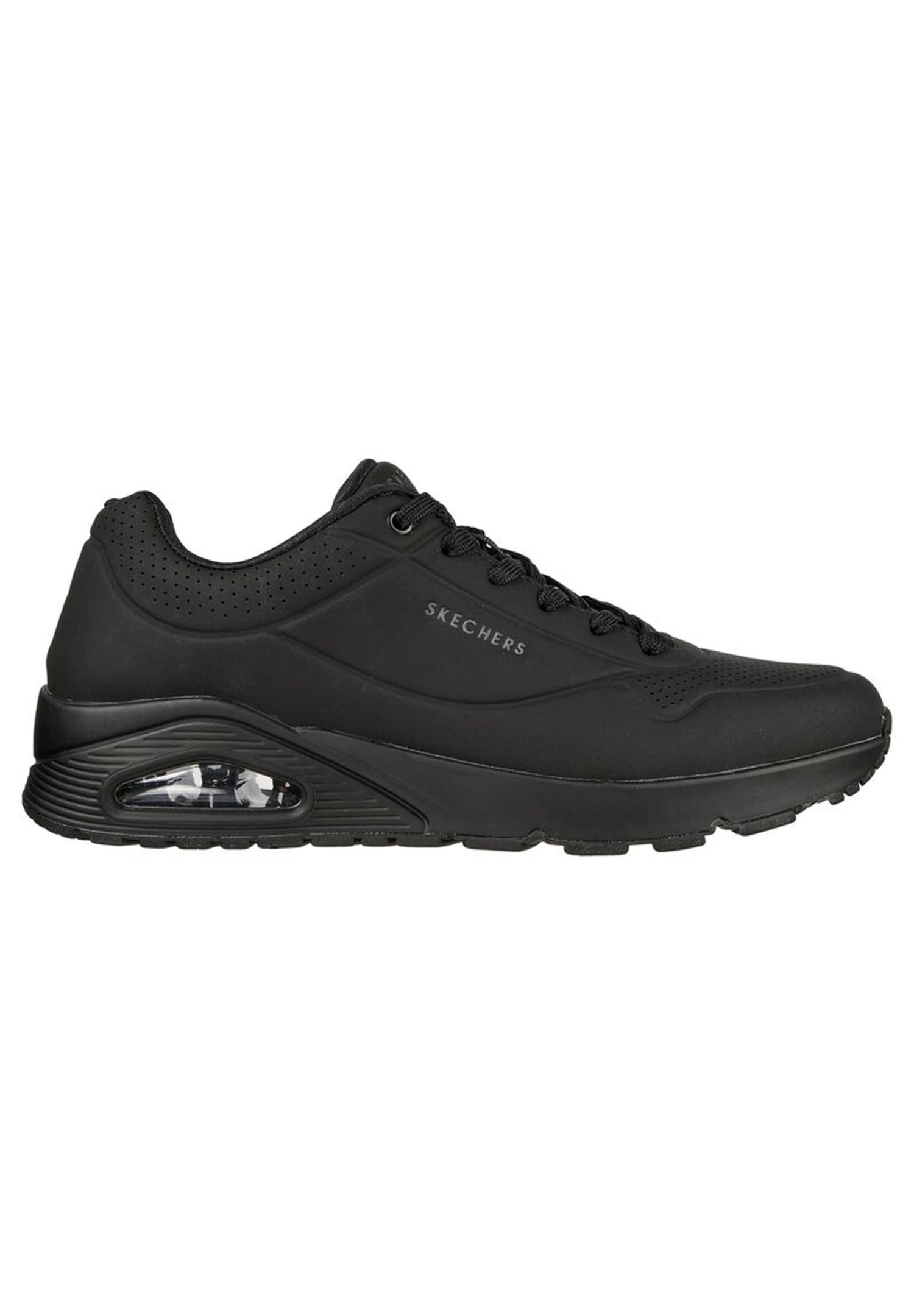 Klassischer luftgepolsterter Look trifft auf modernen Komfort im SKECHERS Uno – Stand on Air Schuh. Klassischer, sportlicher Sneaker im Joggerstil zum Schnüren mit einem Obermaterial aus Synthetik mit Glattlederstruktur sowie Ziernähten und Perforationen. Einlegesohle mit Air Cooled Memory Foam, sichtbar