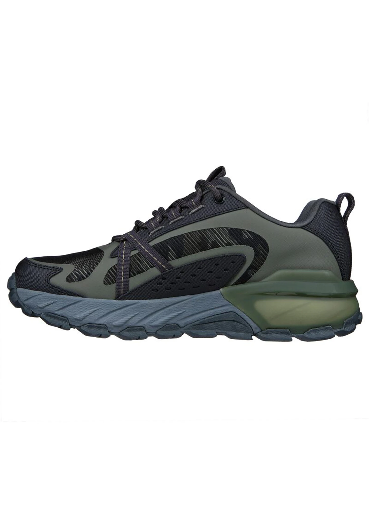 Der Skechers Max Protect – Task Force vereint sportlichen Komfort und dauerhafte Traktion. Dieser Schnürschuh für Outdoor-Trails verfügt über ein mit 3M Scotchgard behandeltes, wasserabweisendes Obermaterial aus Leder und Synthetik mit einer Skechers Air-Cooled Memory Foam Einlegesohle und einer rutschfesten Goodyear Performance-Laufsohle.