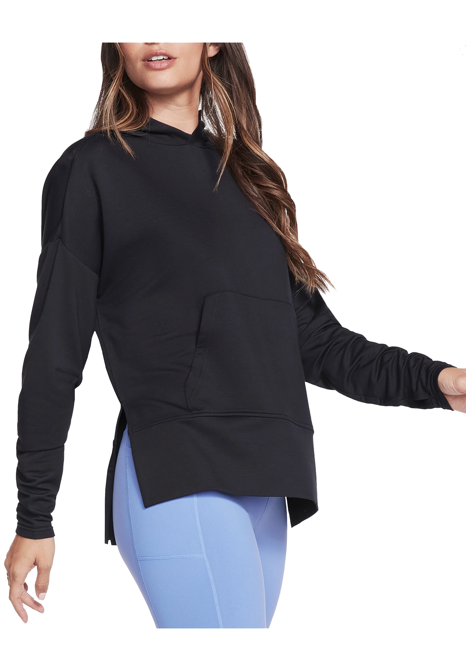 Entspann dich in lässigem Stil und mit herrlich bequemem Tragekomfort mit dem Skechers GOLOUNGE Wear SKECH-LUXE Restful Long Sleeve Hoodie. Dieser Hoodie aus weichem und seidigem SKECH-LUXE Frottee-Strick verfügt über lange Ärmel, überschnittene Schultern, eine Kängurutasche und Daumenlöcher an den Ärmelabschlüssen.